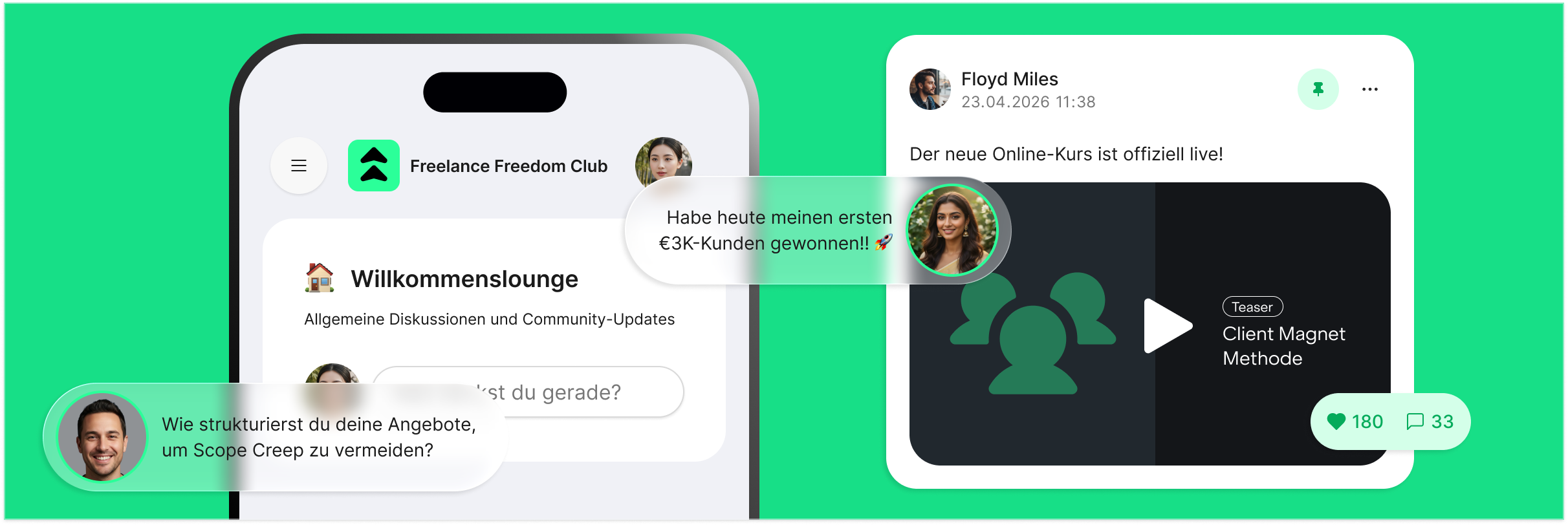 Die komplette Infrastruktur für Kurse, Community und Monetarisierung – in einer Plattform.